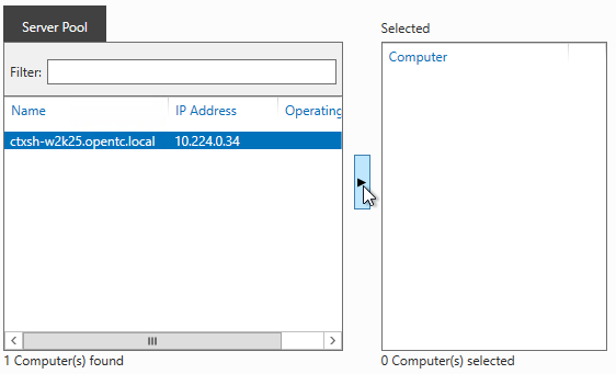 Danach wählen sie ihren Server aus, indem sie ihn mit dem Pfeil in die rechte Liste an ausgewählten Servern bewegen.